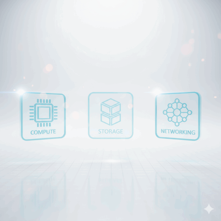 Compute, Storage, Networking, Virtualization, Backup, Disaster Recovery, Security, and Cloud Integration—architected for availability, performance, and cost efficiency.