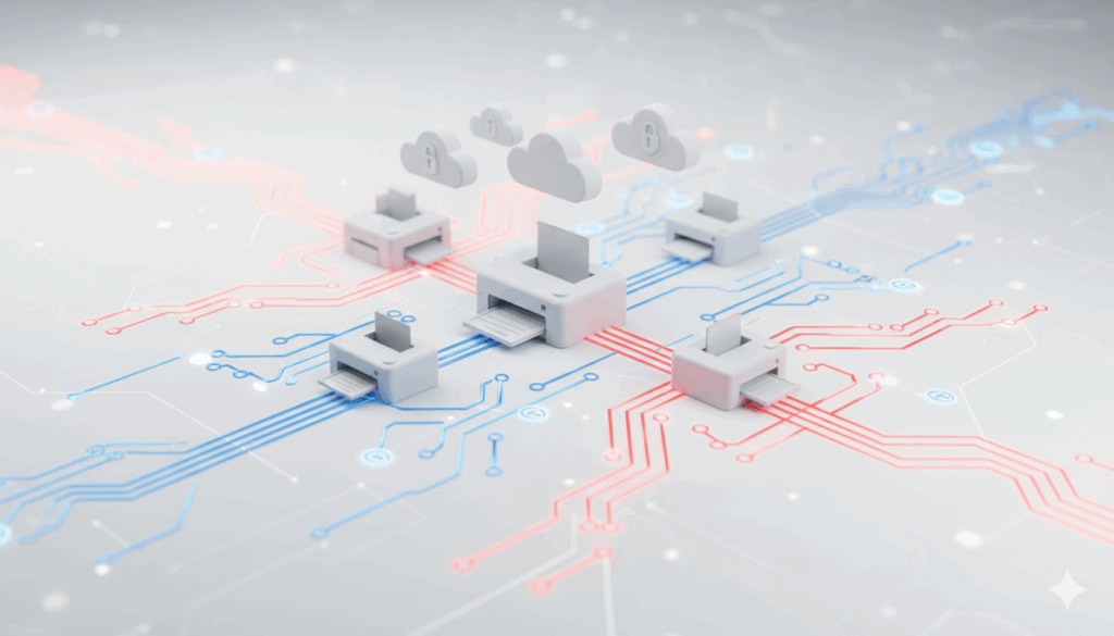 Driverless printing with cloud queues and BYOD/guest access under policy guardrails.📊