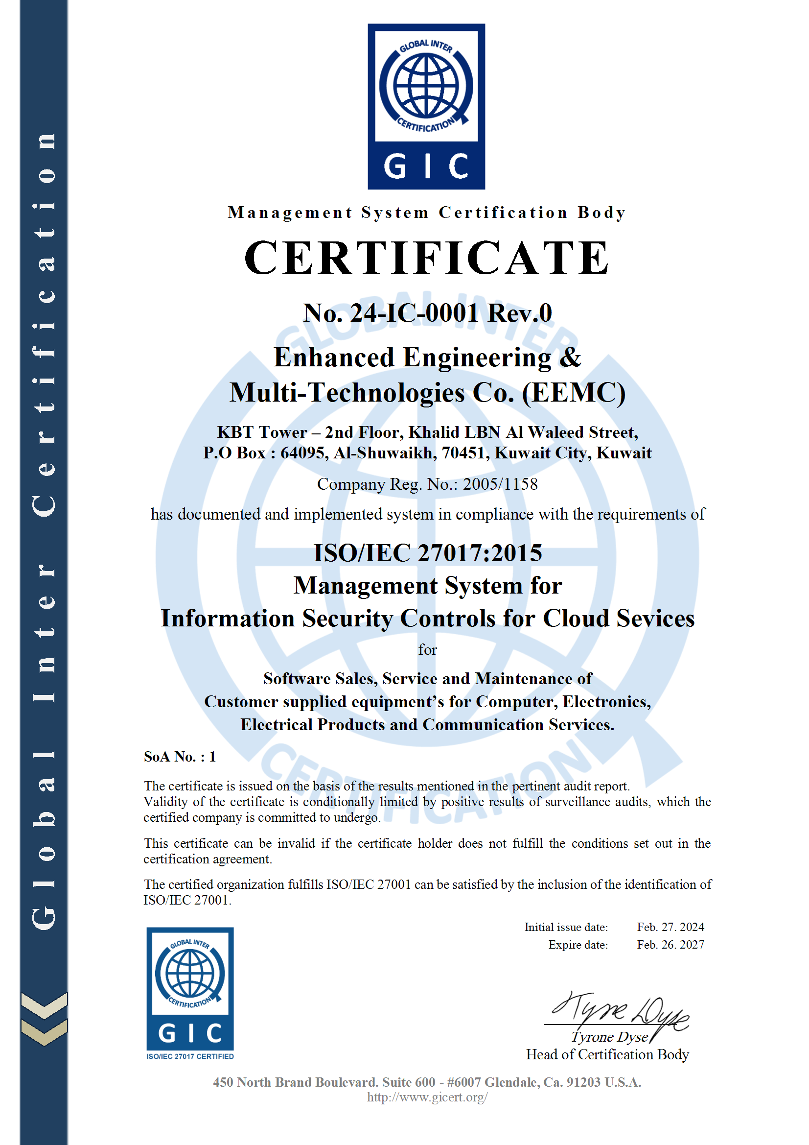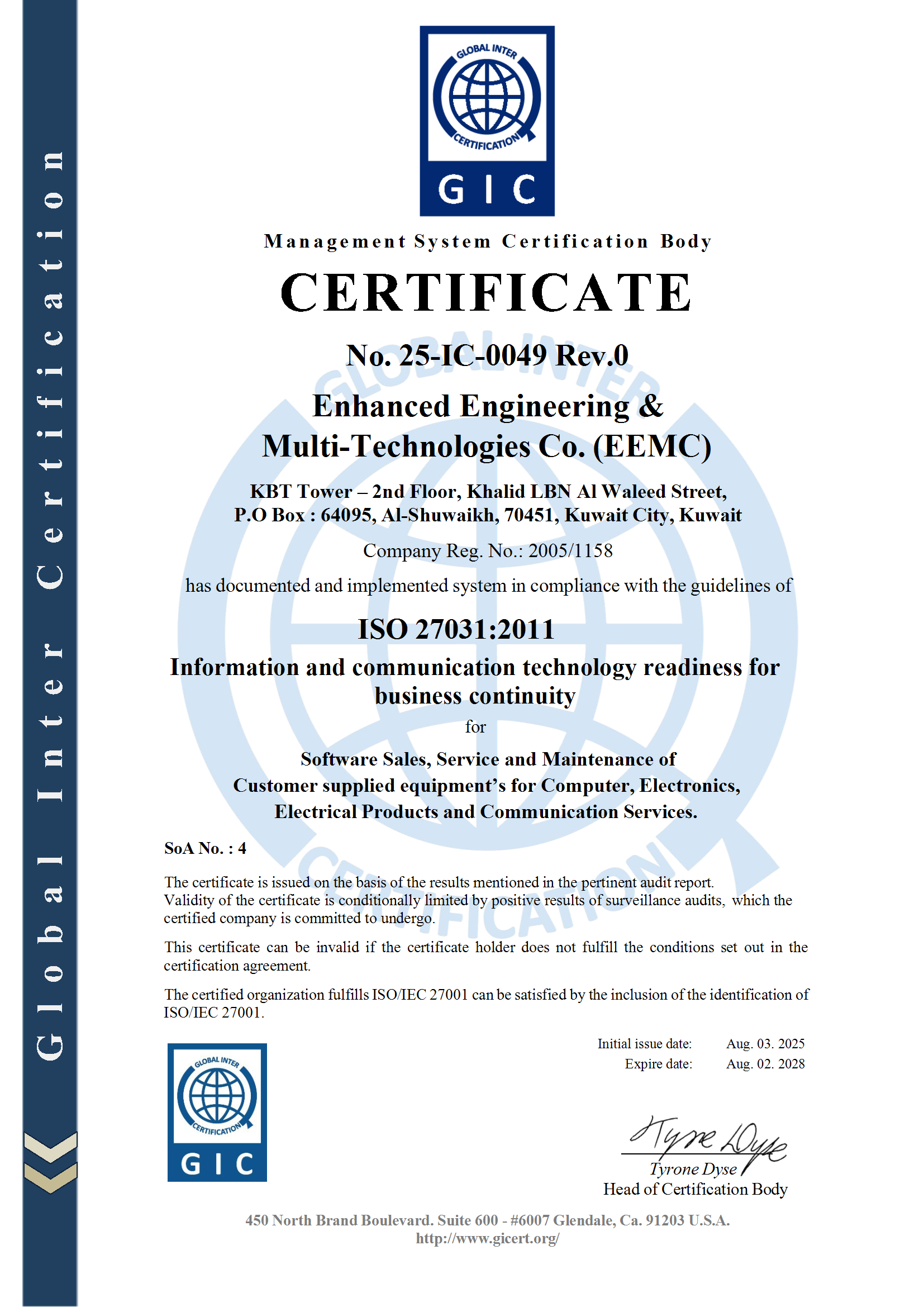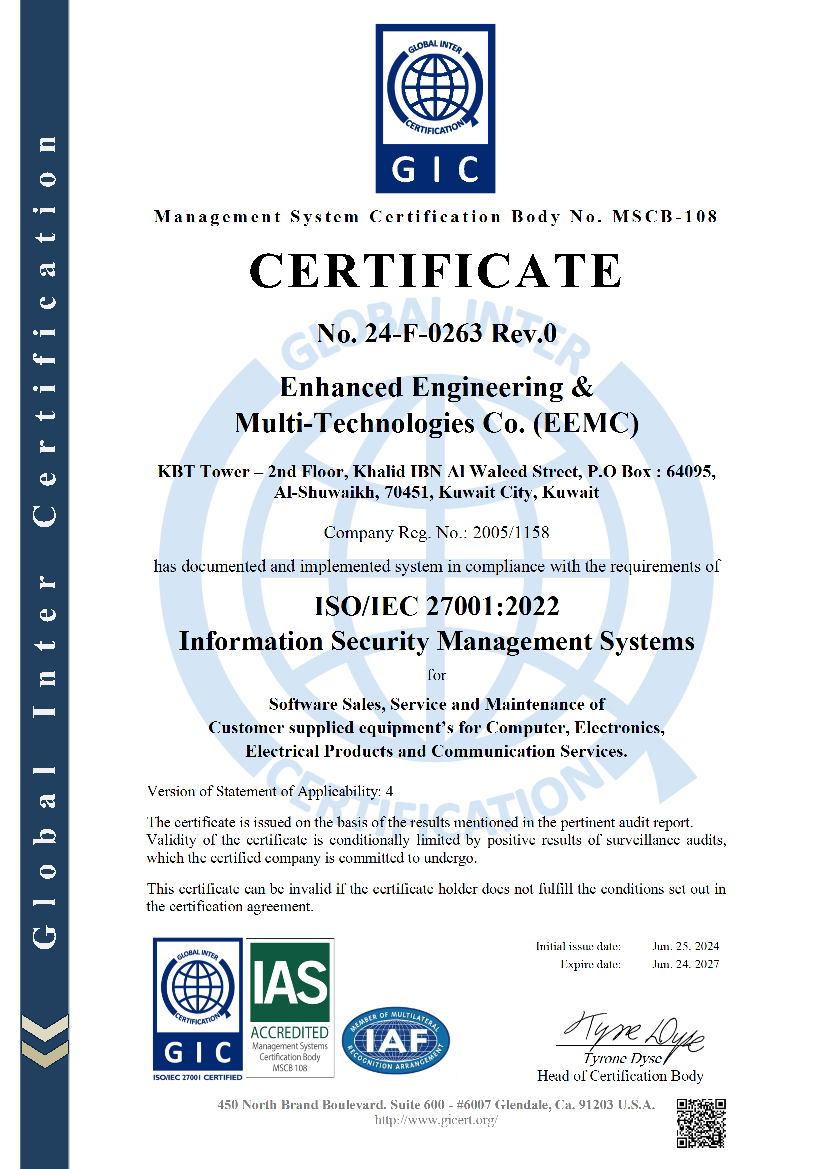 EEMC operates under internationally recognized frameworks to ensure that our quality, security, and governance practices are auditable and verifiable.